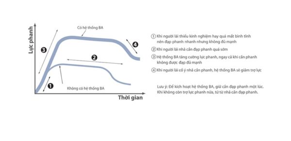Hệ thống hỗ trợ lực phanh khẩn cấp BA tự động gia tăng thêm lực phanh trong trường hợp khẩn cấp, giúp người lái tự tin xử lý các tình huống bất ngờ.