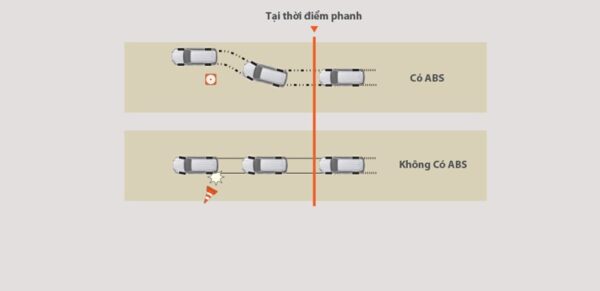 Khi được kích hoạt bằng cách đạp phanh dứt khoát, hệ thống chống bó cứng phanh ABS sẽ tự động nhấp nhả phanh liên tục, giúp các bánh xe không bị bó cứng, cho phép người lái duy trì khả năng điều khiển xe tránh chướng ngại vật và đảm bảo ổn định thân xe.